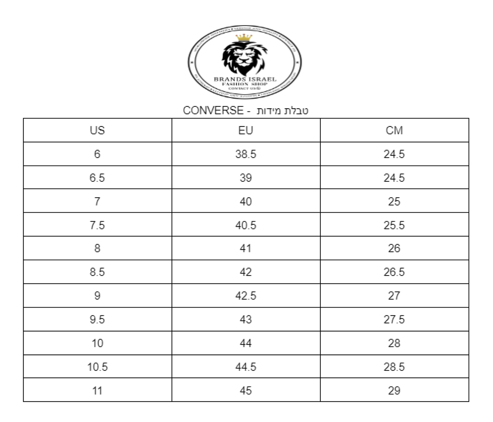 לפני הרכישה מומלץ להסתכל בטבלת המידות